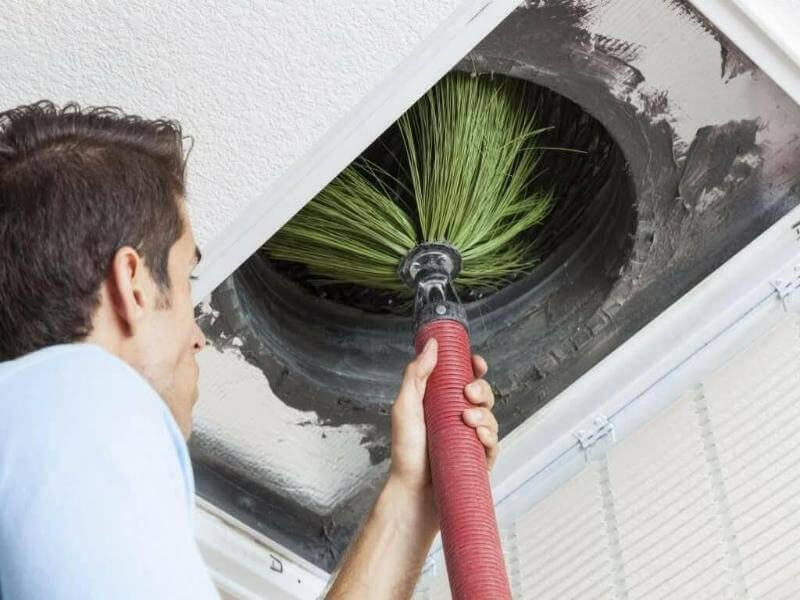 Details whole-home and commercial duct cleaning, dryer vents, coil cleaning, sanitizer/microbial treatment, and post-construction cleanup. Lists inclusions/exclusions, SLAs, and upsells (camera inspections, register replacement). Ties typical job times and order minimums to pricing logic and daily capacity.